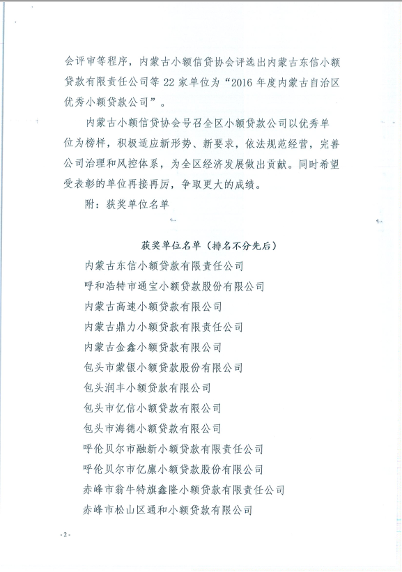 2016 год - это десятый год экспериментальной работы микрофинансовой компании во Внутренней Монголии, а также третий год создания небольшой кредитной компании Wulanchabu City, дочерней компании нашей группы. Хотя время создания короткое, компания строго следуетНациональные и местные правила, предназначенные для работы в сельских районах в качестве фокуса, для решения финансовых потребностей конечного пользователя в целях содействия развитию сельских районов, фермеры увеличивают мои цели в области развития, являются компетентными департаментами и похвалой сообщества.Wulanchabu City Tianyun Small Loan Co., Ltd. будет продолжать перерабатывать в будущем «осуществлять отраслевую самодисциплину, защищать отраслевые интересы, предоставлять членские услуги для содействия развитию отрасли» с целью реализации автономного региона в работе по развертыванию,Усилия в местных сельских районах города Вуланчабу, развитие сельского хозяйства для оказания услуг и серьезное проведение работы.