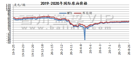 本周周内需求复苏仍存忧虑与风暴气候博弈,国际原油价格小幅震荡。国际原油价格小幅上涨。其中WTI期货本周均价42.86美元/桶,较上周上涨0.62%,较上月上涨5.14%;本周布伦特期货均价45.18美元/桶,较上周下跌0.04%,较上月上涨4.52%。综合来看,在原油需求疲软背景下,飓风气候难以将原油推至高位,预计下周国际原油价格仍将维持区间内震荡。
