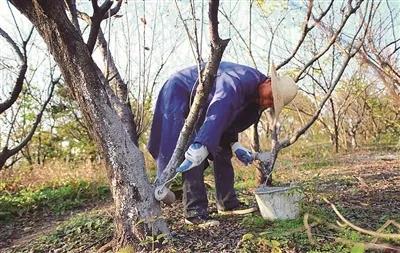 枝干涂白不仅能有效地防治冬季花木的冻害、日灼、提高花木的抗病能力,而且还能破坏病虫的越冬场所,起到既防冻又杀虫的双重作用。特别是对树皮里越冬的螨类、蚧类等防治作用尤佳。常用的涂白配方为:生石灰5千克,石硫合剂原液0.2千克,盐0.3千克,猪油(用其他动植物油亦可)0.2千克,水17千克。配制方法:先将生石灰和盐用水化开,然后加入猪油和石硫合剂原液充分搅拌均匀既可。特别注意,生石灰一定要充分溶解,否则涂到花木枝干上后易造成灼伤。由于冬季各种病虫多处于休眠状态,对于那些在发生季节不易防治的病虫,可以采用冬季药物防治的措施。如用50~100倍液的机油乳剂喷雾,可防治介壳虫。用50%辛硫磷乳剂500~800倍液,按每平方米4千克灌施可防治菊花瘦蚊。晚冬喷施1%波尔多液2~3次能对梨桧锈病、月季黑斑病等多种病害起到良好的防治作用。