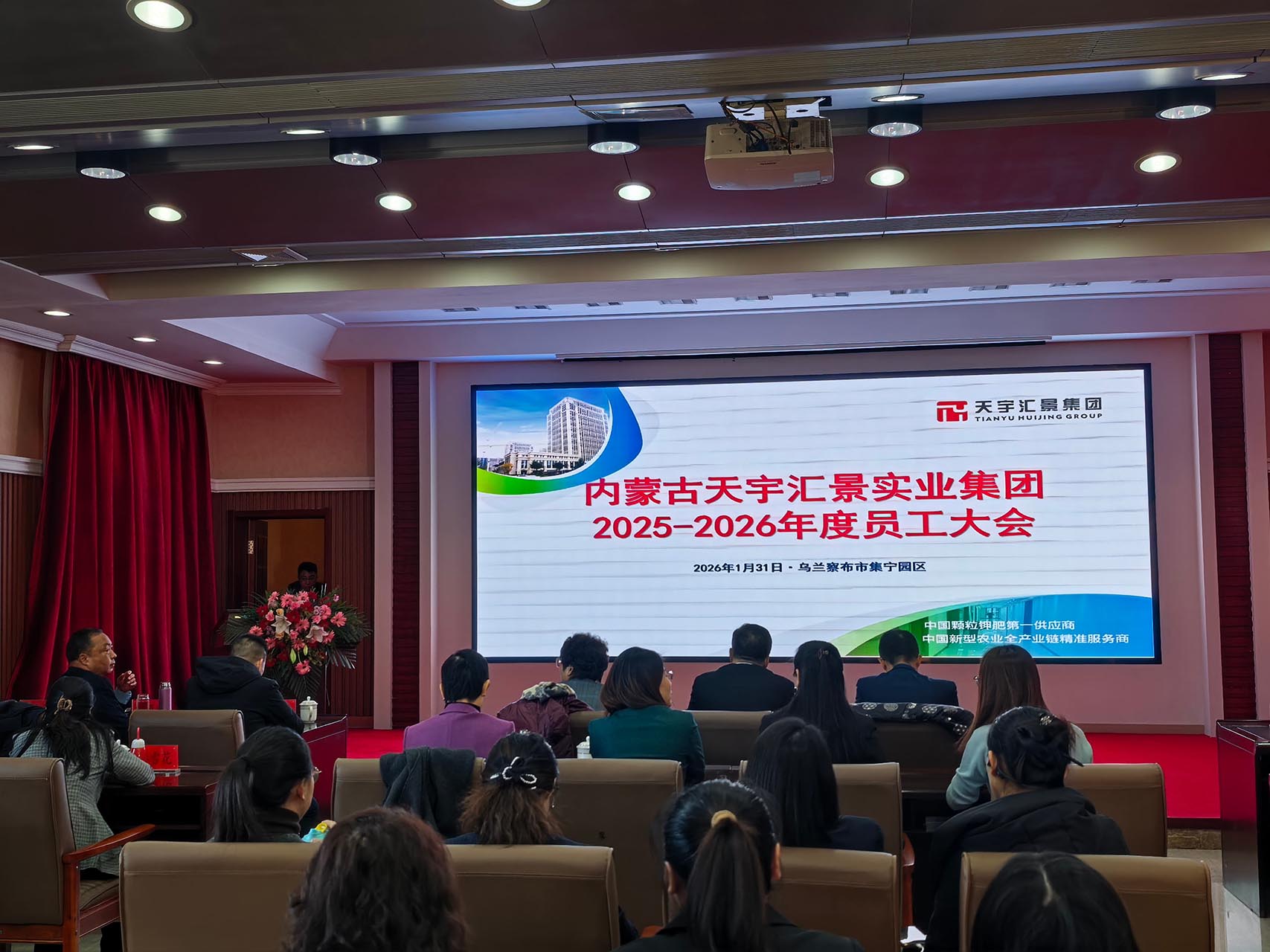 2026年1月31日,天宇汇景集团2025-2026年员工大会暨表彰会在集团集宁园区隆重召开,集团集宁地区全体员工、其他各地区员工代表到场参加。